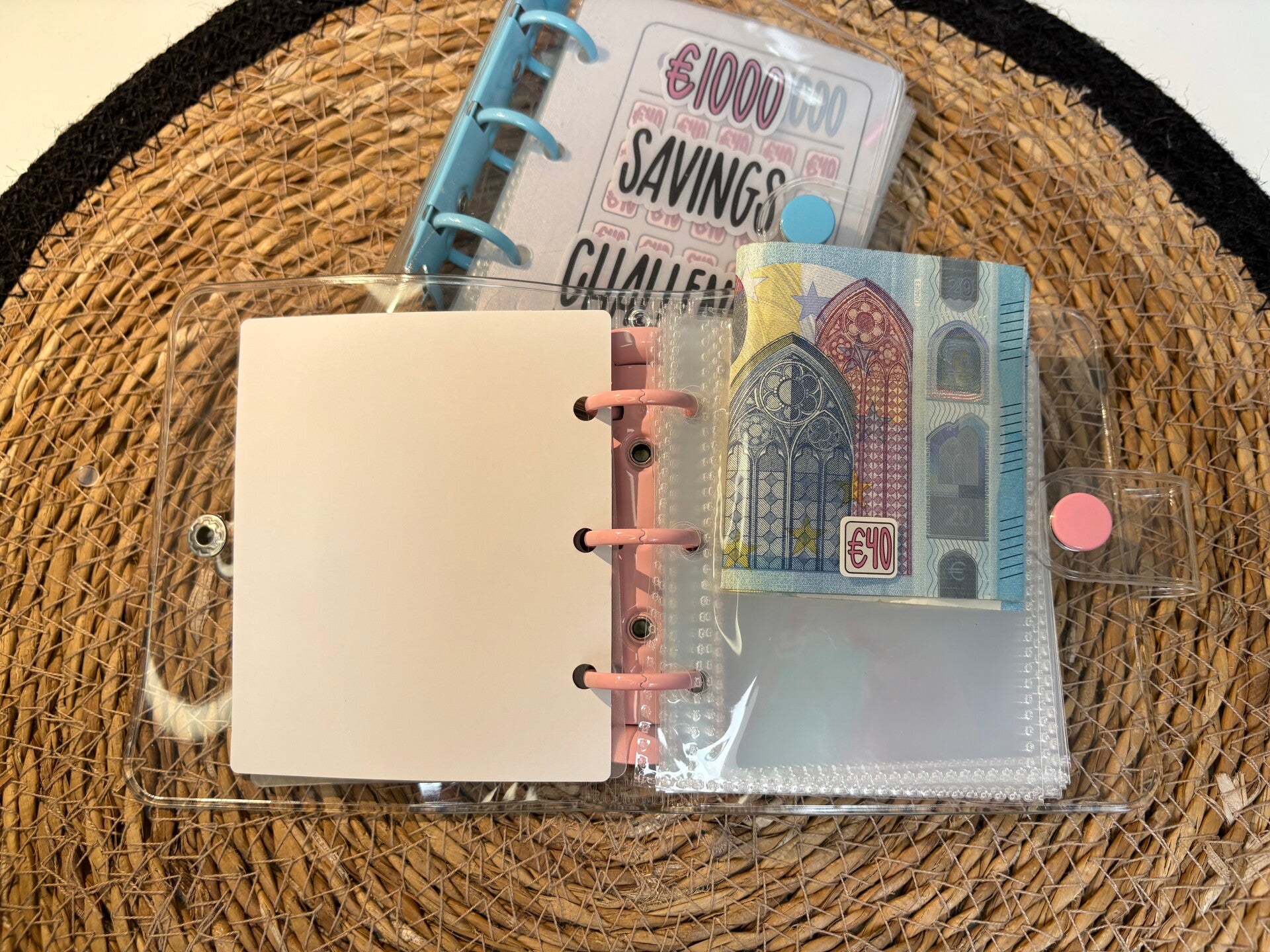 Klein mapje waar je in totaal €1000 kunt sparen.
